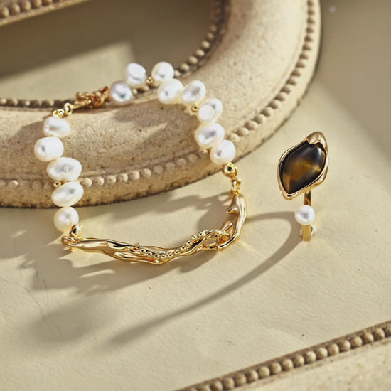 The tiger eye stone captures nature's strength and protection, while the delicate pearl adds a touch of elegance, creating a harmonious blend of power and grace.