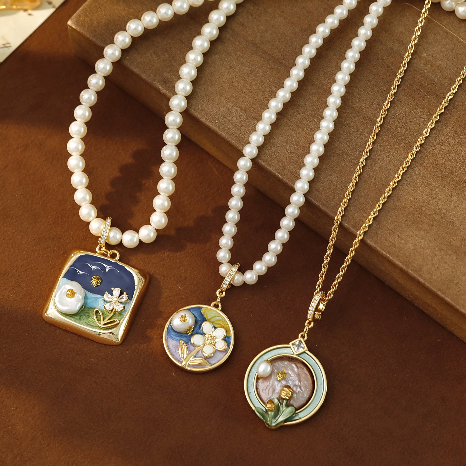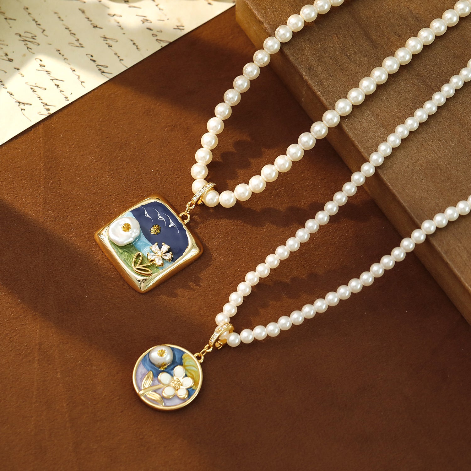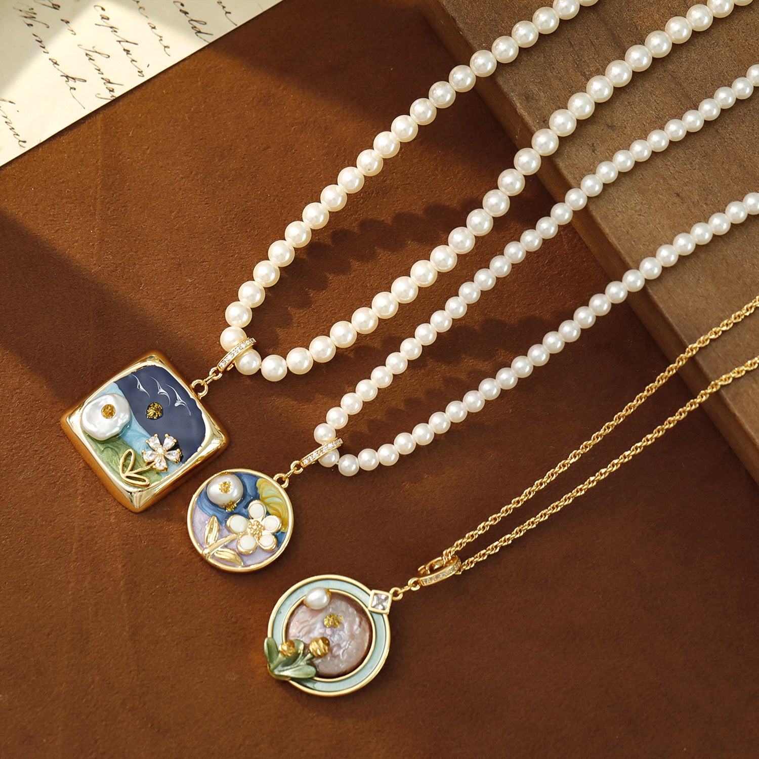 Liuvelle Monet Garden Series 18K Gold Pearl Necklace – Handmade Light Luxury Jewelry for Women, Elegant French Vintage High-End Gift