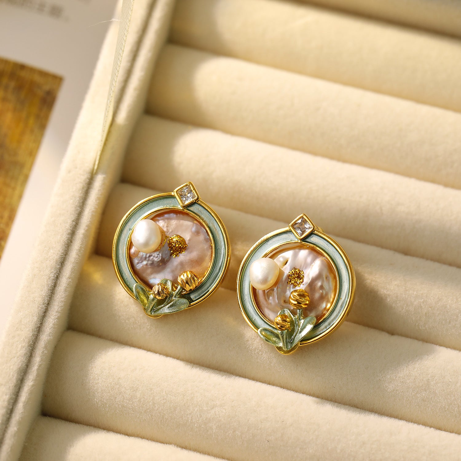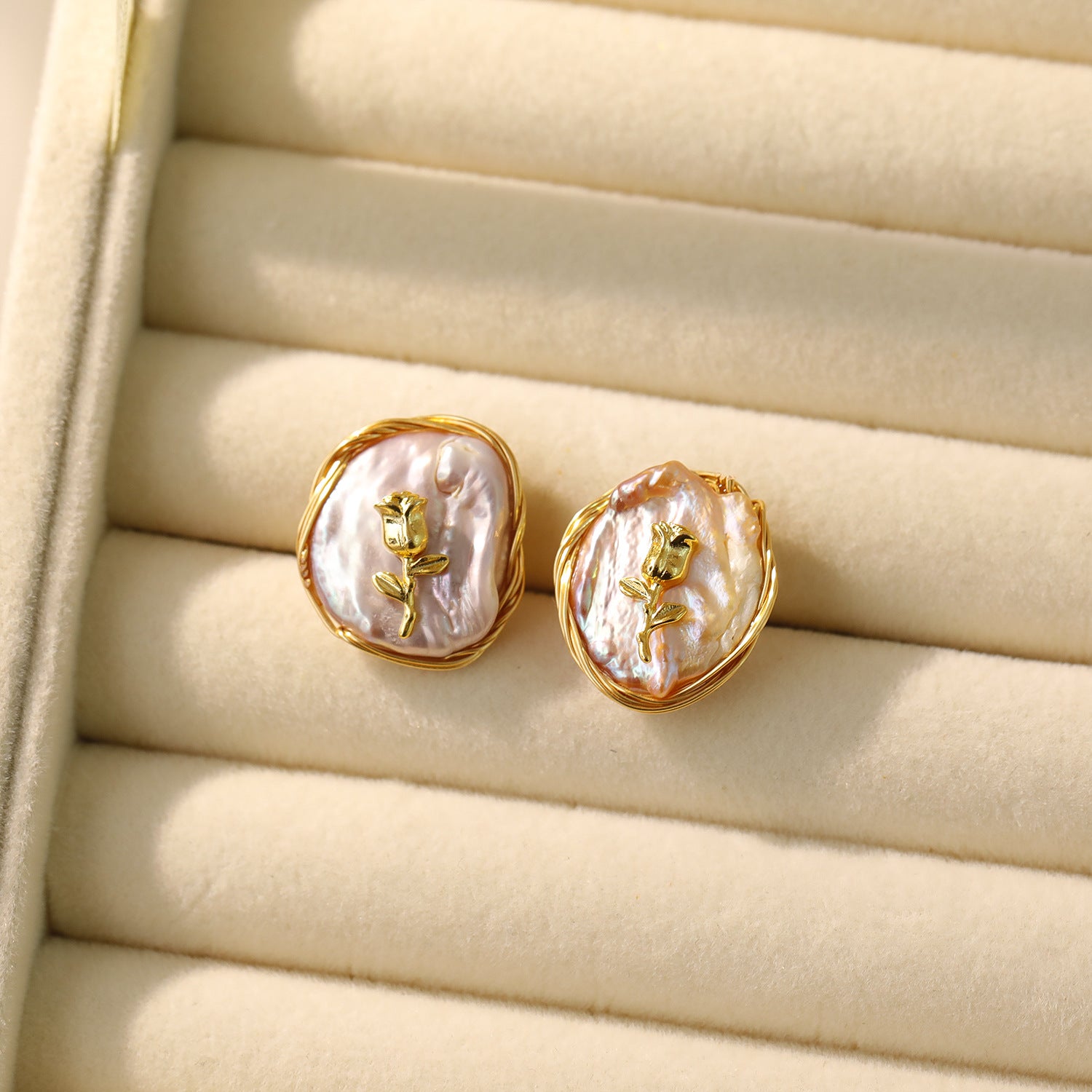 Liuvelle Monet Garden Collection: Baroque Pearl Earrings β Moonlit Bloom