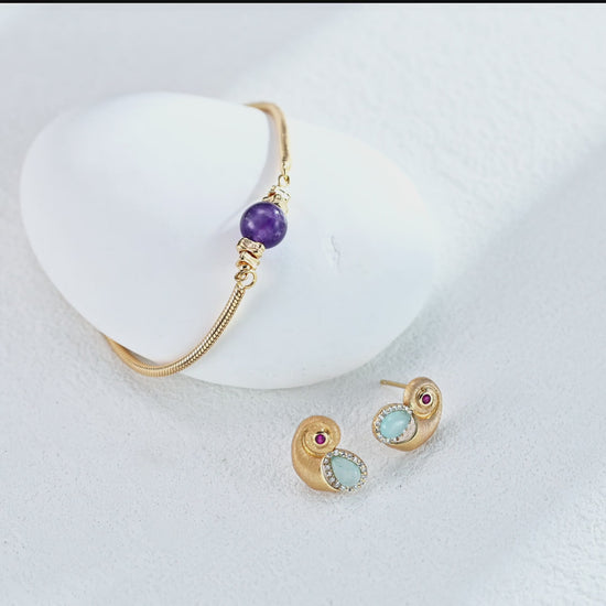These vintage-inspired earrings capture the essence of oceanic wonder, combining sparkling zirconia with blue stones in a design that evokes the legendary submarine and the mysteries of the deep sea.