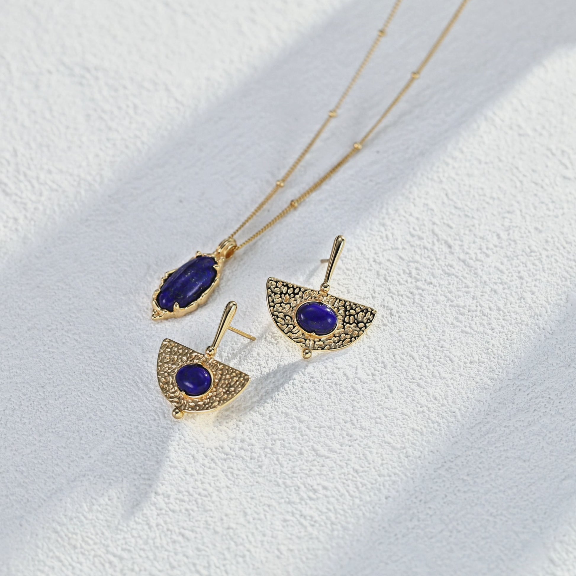 S925 silver vintage natural lapis lazuli necklace with elegant design and deep blue stone.